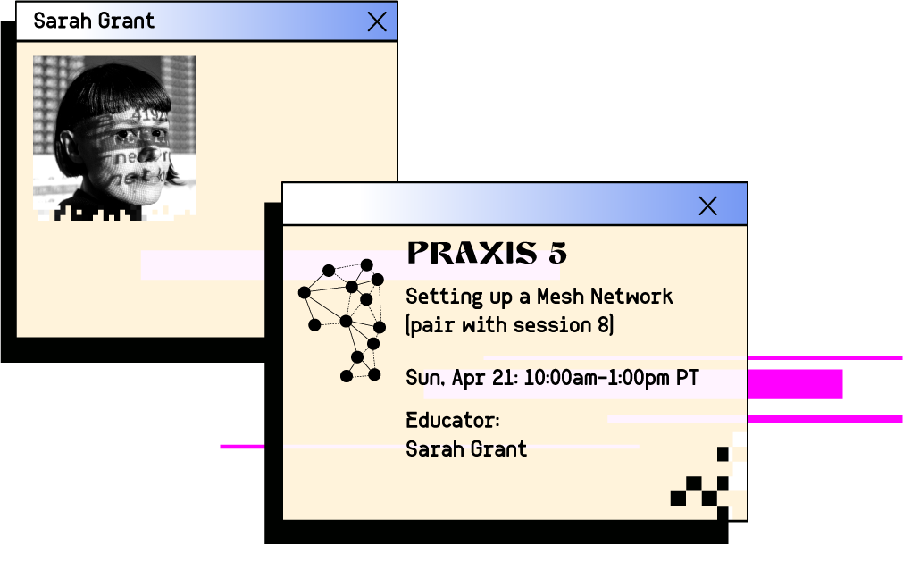 In this hands-on session, you will be guided through the installation, configuration, and deployment of a basic mesh network. As we build, we will consider questions around the control of data and network infrastructure tied to the larger themes of access, power, resilience, and sustainability. Participants will be introduced to many practical concepts, including the basic building blocks of the command Line interface, computer networking, configuring a server for hosting websites, ‘captive portals’, and peer-to-peer file sharing. By the end of the session, we will leave with a functional mesh network ready to be deployed in the world!