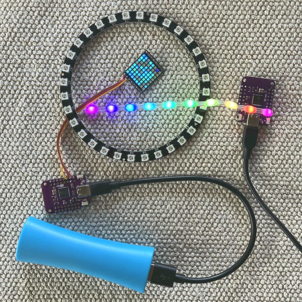 In this course, we will be using Adafruit’s “Neopixel”, a type of individually addressable LEDs. You will learn how you control the LEDs using a combination of Circuit Python, Arduino hardware, and WLED boards for a no-coding experience.