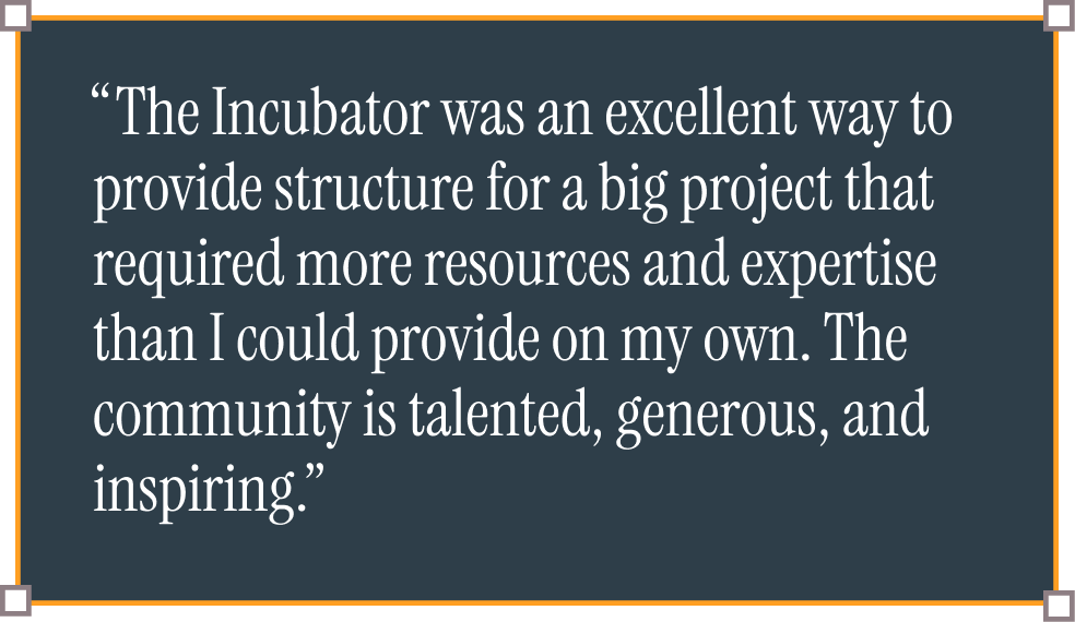The application window for the 2025 Incubator cohort is now closed. We will begin accepting applications for the 2026 cohort in December 2025.