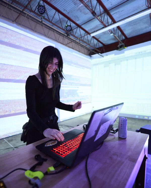 DJ_Dave is an experimental electronic-pop artist, DJ, and producer, who creates and performs her music using code – a style called algorave. As the first to combine live coding and DJ mixing simultaneously in her shows, Dave is paving the way in bringing this style of producing and performing to the masses. Ranging from her signature state-of-the-art live-coded performances at Grimes’ MET Gala Afterparty, the Whitney Museum, and the META headquarters to drawing crowds at culturally significant festivals like Coachella, Portola, and Art Basel, to DJing underground parties with NYC icons like UNIIQU3 and umru – DJ_Dave has become one of the next generation’s most in-demand live acts. Her glimmery, dancefloor-ready tracks, such as “Castles ” (over 1.4M streams), reflect the infectious, futuristic energy of her innovative production & writing style. She is a regular contributor on Frank Ocean’s Homer Radio, and has done official remixes for electronic legends like Tove Lo, Channel Tres, and Uffie. DJ_Dave just finished up a successful tour opening for JPEGMAFIA and Danny Brown, and recently released her entirely self written and produced debut EP Intercell.