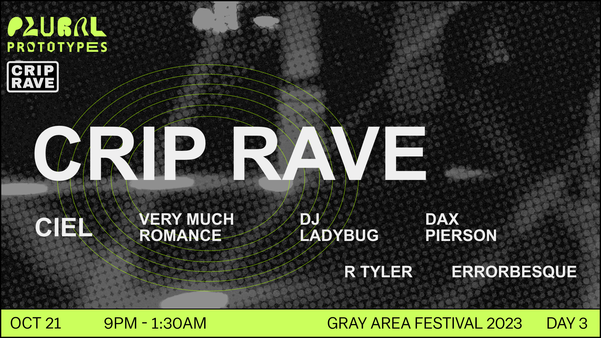 Crip Rave lands at Gray Area with a massive headliner set from Toronto-based Ciel, supported by hot local acts Very Much Romance, DJ Ladybug & Dax Pierson, with visuals by R TylerErrorbesque, and Steve Pi[LIVE]!
