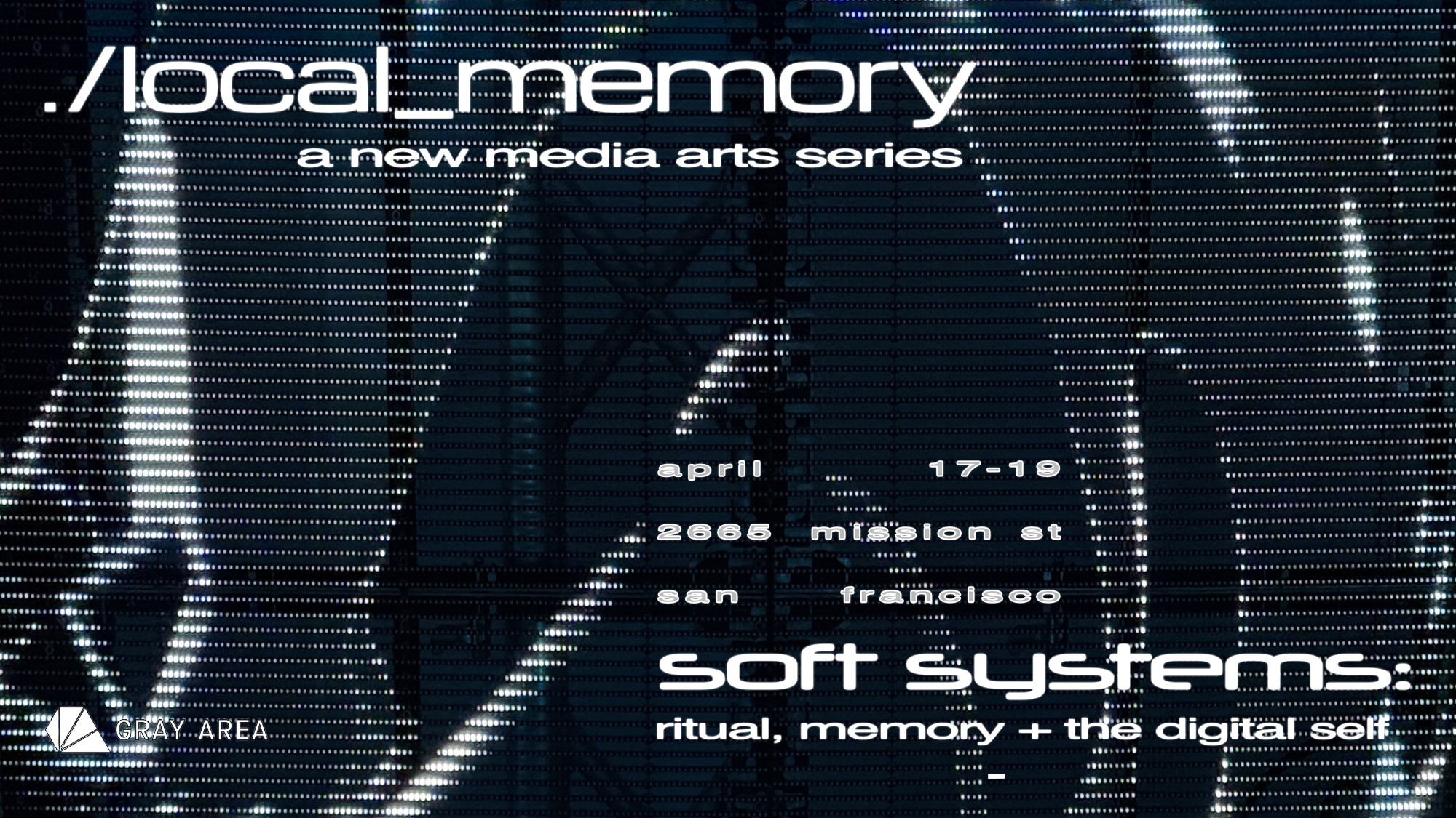 ./local_memory: soft systems is a showcase of recently developed art and tech works by fifteen emerging Bay Area creators that explores how we perceive ourselves in a world inundated by digital systems. Over three nights, this exhibition will include ambitious pieces ranging from immersive, large-scale installations to intimate artifacts, presented across both digital and physical media.