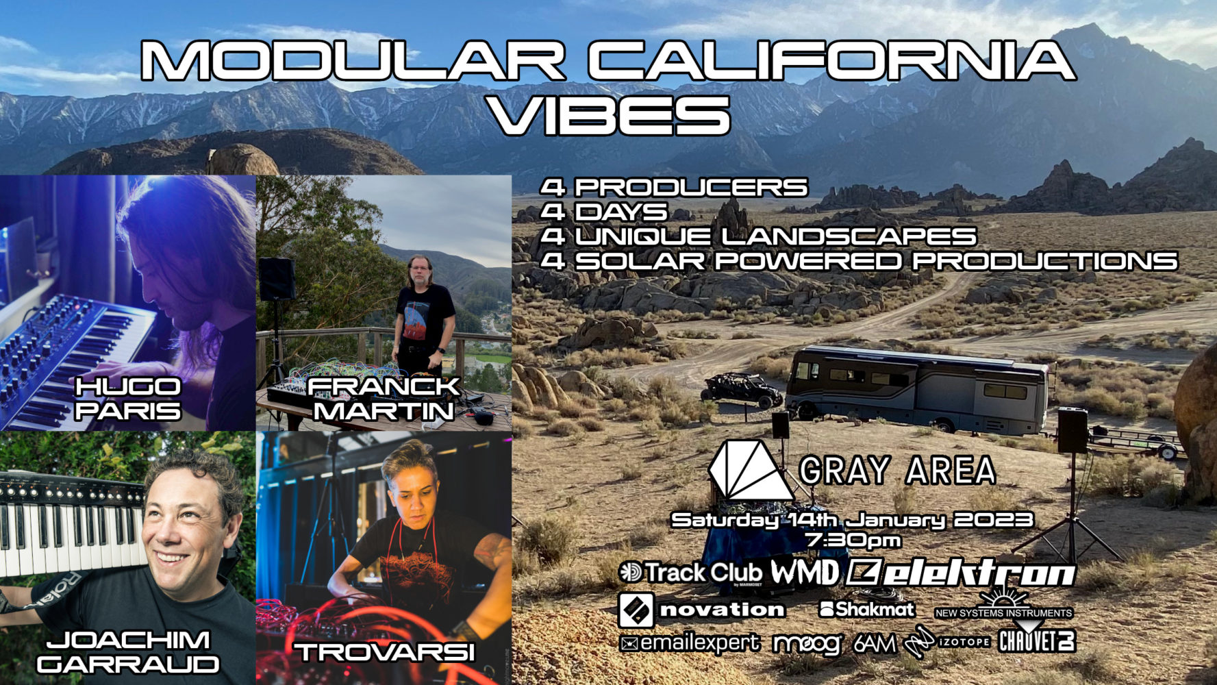 Your ticket automatically enters you into the music gear giveaway. Following the movie screening and the live perfomances, the #ModularCaliforniaVibes crew will announce the giveaway winners. Full music gear and equipment list: