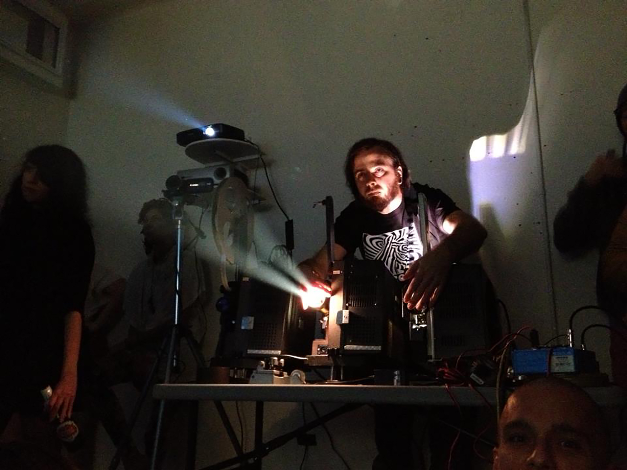 Perpetual Motion—a series devoted almost exclusively to live experiential artworks exploring the analog basics of cinema—“goes electric” for one night only with works exploring the attractive/repulsive allure of the electronic signal, the contrasts between performance space and virtual space, as well as intermedia collision and fusion. As a follow-up to his 2015 CROSSROADS film festival appearance, Michael A. Morris’ (Dallas) presents his series of Hermeneutics (1–3)—using 16mm multi-projection, live video processing, custom software and light-sensitive electronics—in the production of real-time cinematic synesthesia. Morris’ graceful fusions are followed by Scott Arford’s (Oakland) TV–IV, an exceedingly aggressive and purgative collision of semi-compatible technologies. Audio as abstracted video image and video as audio oscillator form a dense, flickering and haunted electronic dialog. Program concludes with Hyper by Montréal’s Le Révélateur (Sabrina Ratté & Roger Tellier-Craig), an immersive and architectural audio/visual hybrid located at the liminal edges between virtual and concrete space.