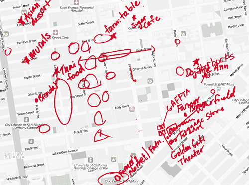 Tendermaps is an experiment in informal, community-based cartography. We encourage people to define their neighborhood in their own terms by creating hand-drawn maps.