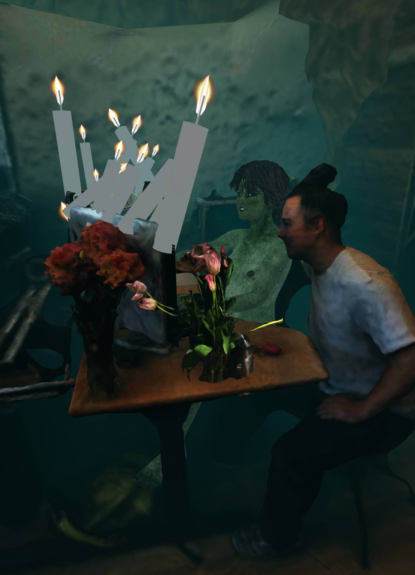 Statement from the Artist:"In 2017 l initiated an autobiographical feminist religion, Leymusoom, as an ever-evolving exploration of my family histories and feminist liberation. Through which, I produced 3D animated videos and interactive games of real and imagined worlds, populated by avatars of my female ancestors, living in 3D environments from actual locations or spaces from my life and family history.