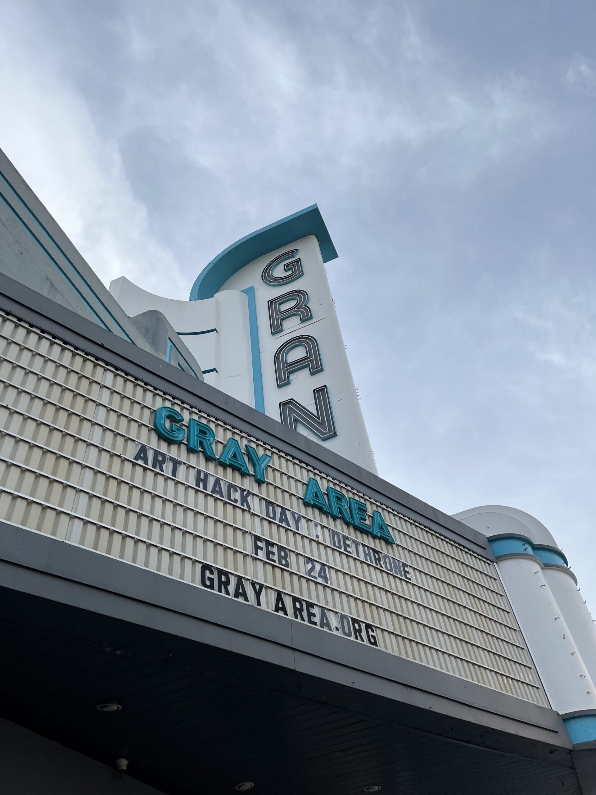 As someone who has always wanted to use technology for cultural change and protest, I thought this would be pretty neat. It was being held down the street from me at Gray Area - an abandoned movie theater from the 1950s cruising culture days (a-la American Graffiti) that has since been converted into a nifty arts and events space.