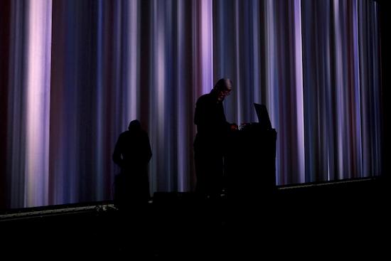 The first night I attended was also the first of the festival overall, starting with the work of Marcus Schmickler. Plunged into darkness and seated formally, we in the audience had to let our minds wander as we chose as Schmickler began with rampaging volume and in many ways never stopped. Extreme but honestly compelling as opposed to overwhelming waves and cascades of sound, taking advantage of the detailed amplifier setup, seemed to crash down from on high, metallic feedback thoroughly separated from guitars (metal or otherwise) that still somehow sounded like a rock show, even if of the kind that maybe only Skullflower could produce. Short transitions felt like the equivalents of introducing new songs, but it was what could almost have been a literal pause for breath before a final shattering plunge that gave his set a climactic impact.