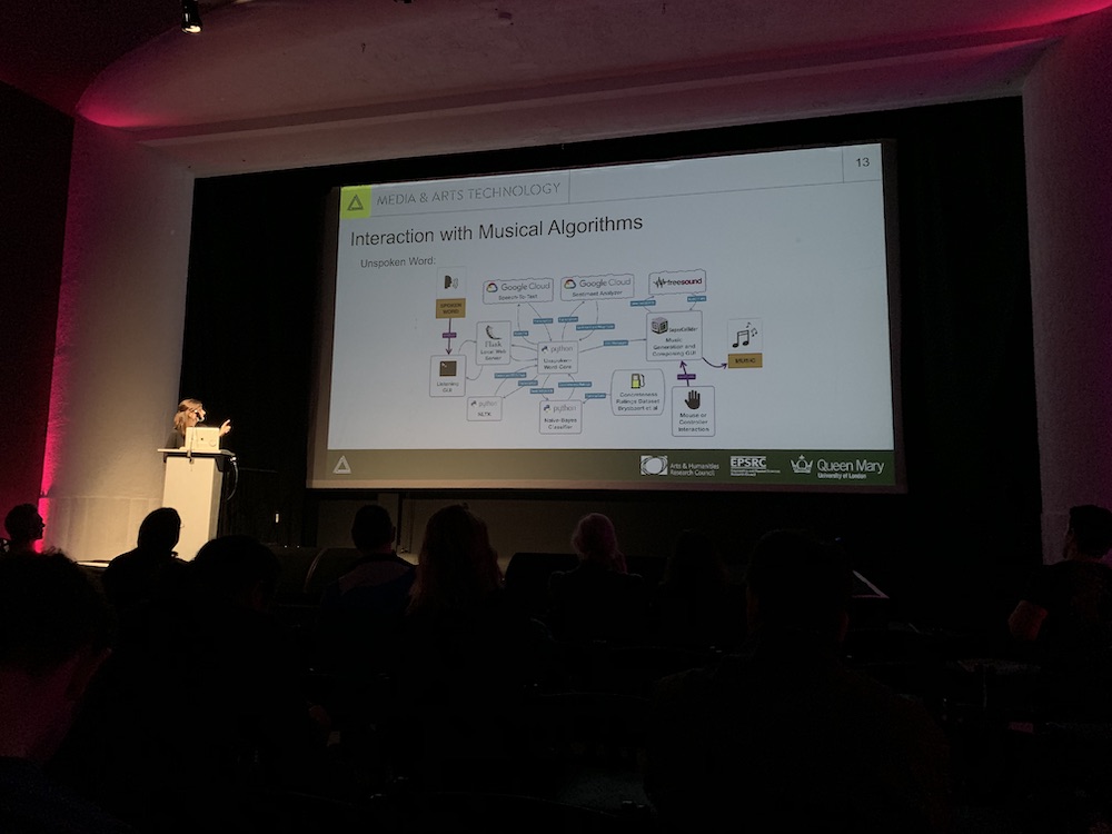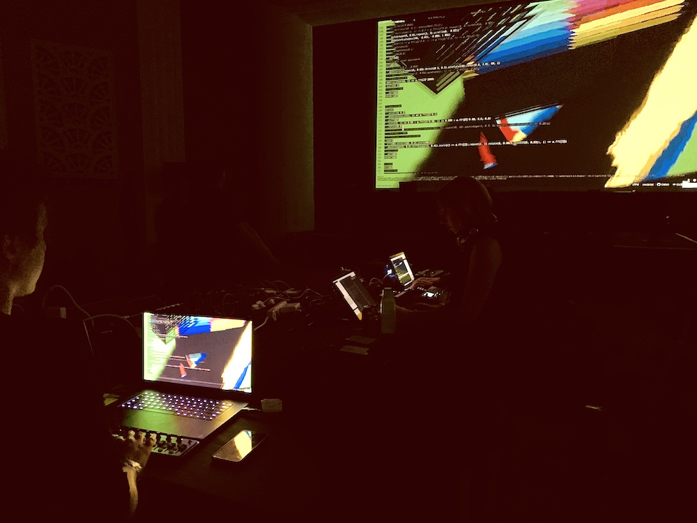 Charlie Roberts was the first performer, and his live coding work did not disappoint. He had a great audience with their ears focused on the sound and their eyes on the screen.