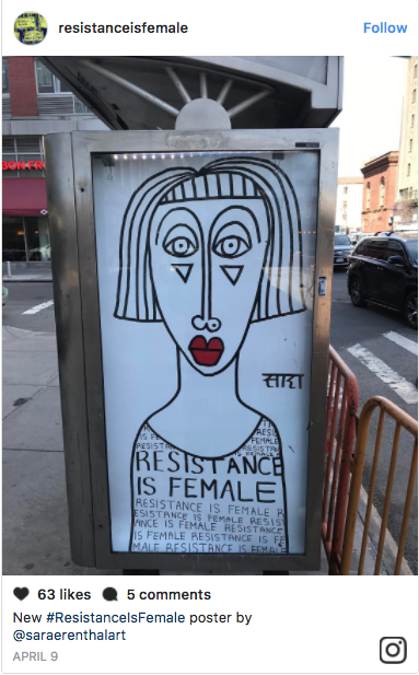 There has been a huge influx of resistance-themed art, whether it’s commentary on world leaders with the graffiti stylings of Mr. Dheo or Bambi (above) or the repurposing of spaces like phone booths as platforms for feminist messages, like the guerrilla campaign of Resistance is Female.
